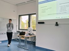 Den Abschluss gestaltete Felix Fankhänel, der die Rahmenbedingungen für den Einsatz des KI-Tools erläuterte. Er teilte Erkenntnisse aus Embedded Research und Expert:inneninterviews mit Unternehmensmitarbeitenden und zeigte, wie praxisnahe Forschung und Entwicklung ineinandergreifen.